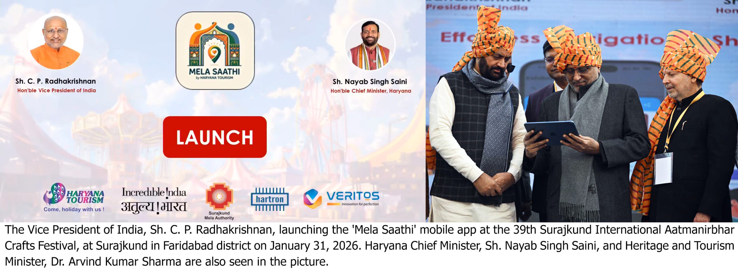 चंडीगढ़, 31 जनवरी – हरियाणा के सूरजकुंड में शनिवार को 39वें सूरजकुंड अंतर्राष्ट्रीय आत्मनिर्भर शिल्प मेला-2026 का भव्य आगाज हुआ,…