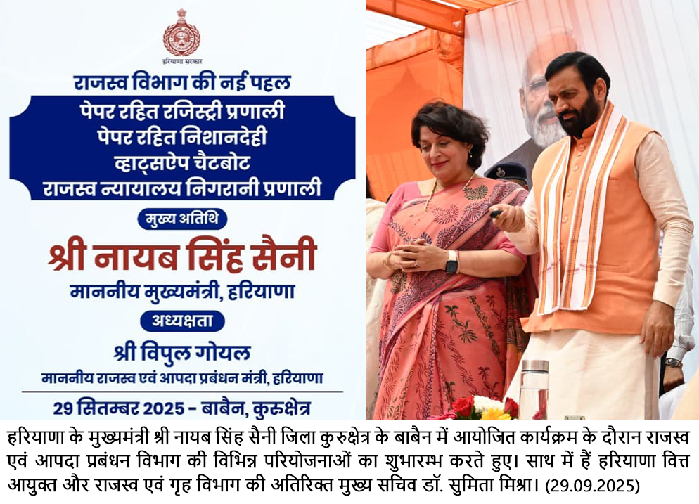 चंडीगढ़, 29 सितंबर — हरियाणा के मुख्यमंत्री श्री नायब सिंह सैनी ने कहा कि सरकार पेपरलेस रजिस्ट्रेशन करके राजस्व विभाग…