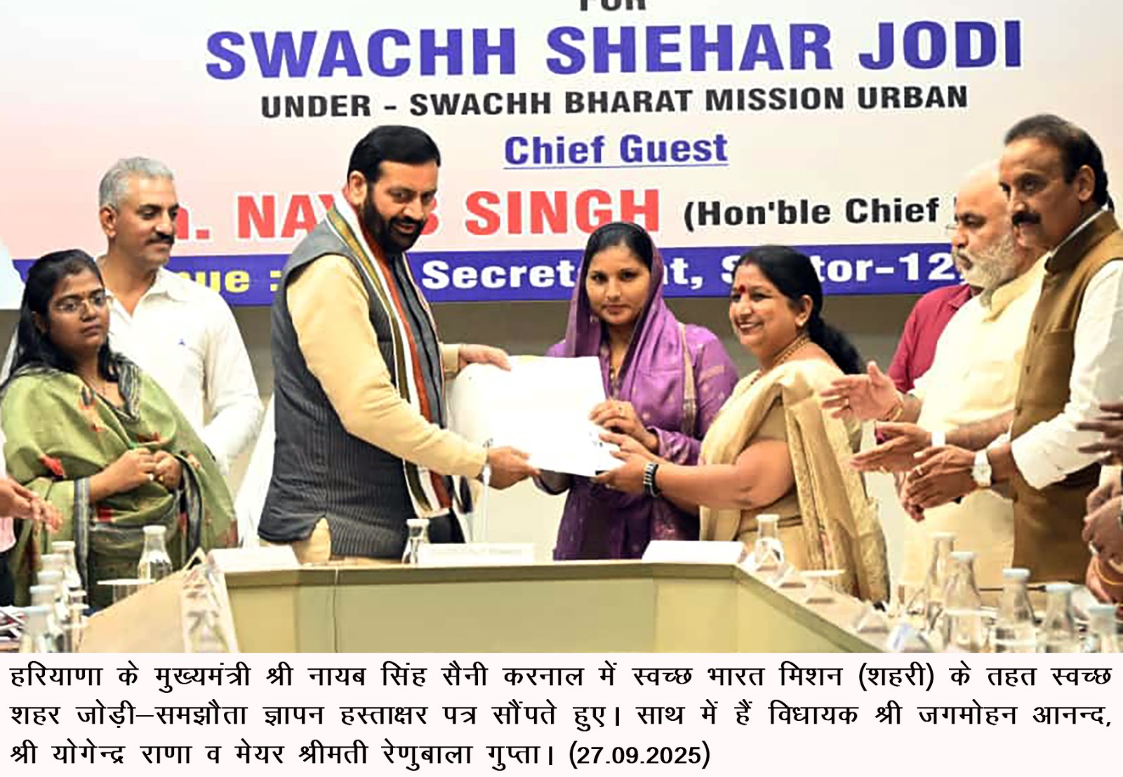 चंडीगढ़, 27 सितंबर — करनाल के जिला सचिवालय सभागार में स्वच्छ भारत मिशन (शहरी) के तहत स्वच्छ शहर जोड़ी-समझौता ज्ञापन…