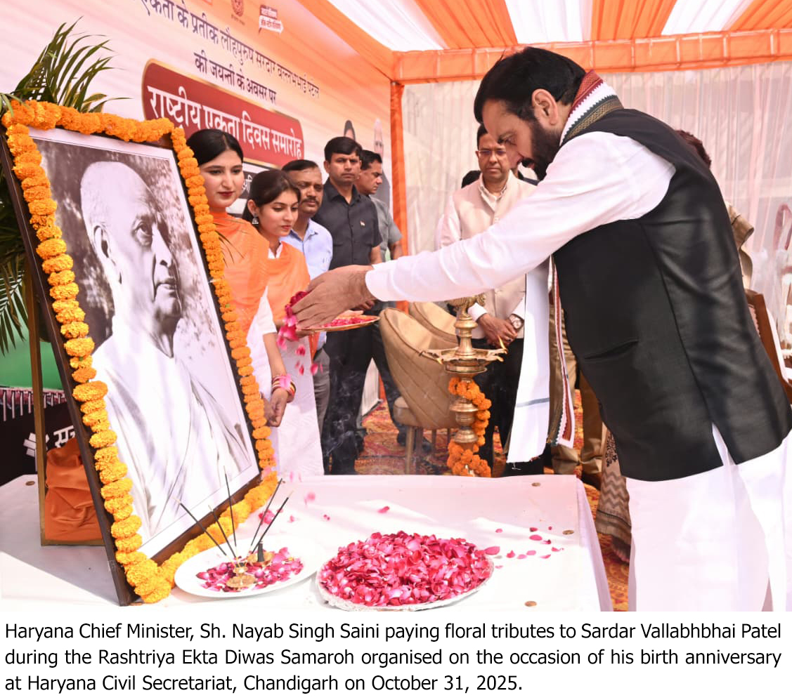 चंडीगढ़, 31 अक्तूबर- राष्ट्रीय एकता दिवस के अवसर पर हरियाणा सचिवालय में आयोजित कार्यक्रम में मुख्यमंत्री श्री नायब सिंह सैनी…