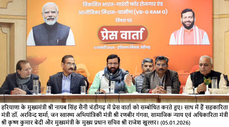चंडीगढ़, 5 जनवरी – हरियाणा के मुख्यमंत्री श्री नायब सिंह सैनी ने कहा कि विकसित भारत – रोजगार और आजीविका…
